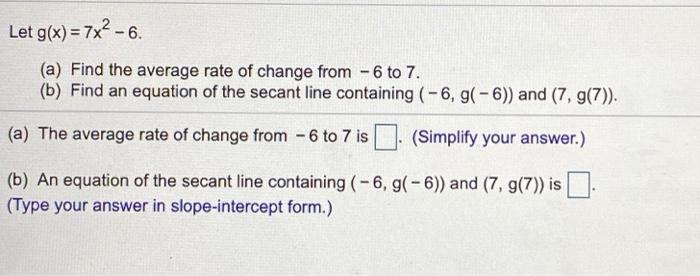 Solved Let G X 7x2 6 A Find The Average Rate Of Chegg Com